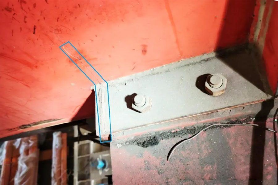 The problem with quick fixes: In this case, after cracks appeared, photos show reinforcement plates were added across cracks. This approach fails to address the underlying causes above and cannot prevent crack propagation. Even if temporarily serviceable, new cracks typically appear near the reinforcement plates after continued use.