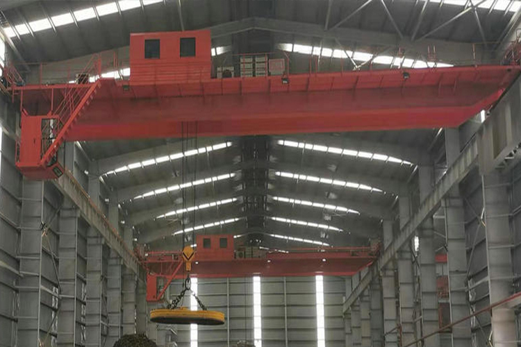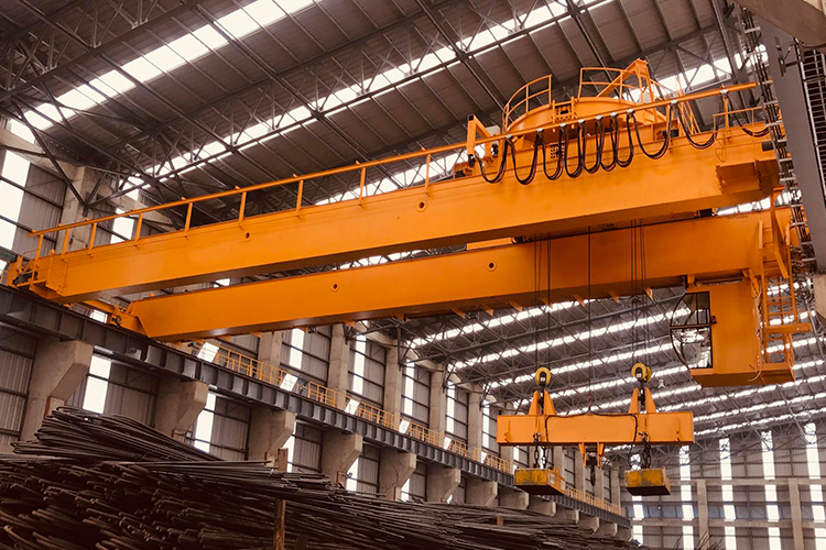 Slab and billet handling electromagnetic cranes is mainly used to lift and transfer rolled steel or large material in steel mill, shipyard, port yard, etc. The trolley could horizontally rotate to meet different working demands. The working class is up to M8, the crane lifting capacity includes the dead weight of magnetic lifters, the capacity reaches 25t+25t and is available to be customized.