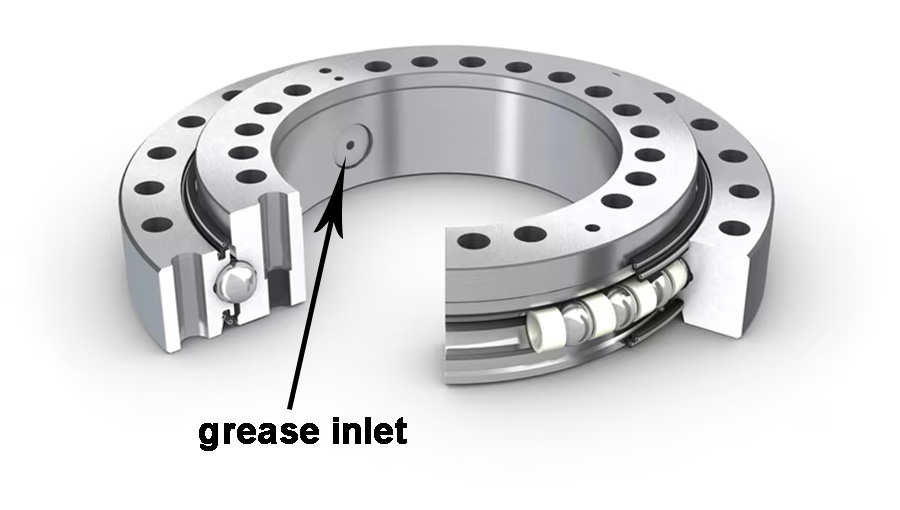 Not all structures should avoid full packing. Some cases do require the cavity to be completely filled. For example, in crane slewing ring raceways, periodic grease application must fill the raceway completely to push out old grease, preventing dust and moisture from entering and maintaining proper lubrication.
